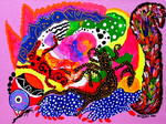 - Abstracte schilderkunst in vrolijke kleuren. Gebruikte materiaal is acryl verf. Expositie is te zien vanaf 9 september tot 6 november 2018.
